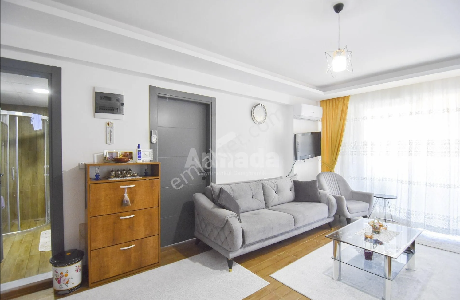 75 m² gross living space, two bedrooms, living room, kitchen, bathroom, 1st floor, elevator, built-in wardrobes, bed and shoe cabinets in both bedrooms, newly made by a carpenter. Price: 3,060,000 TL